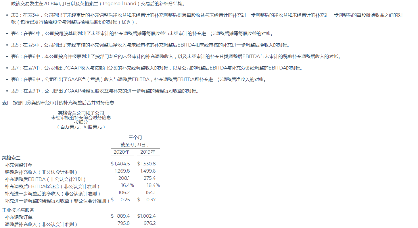 英格索蘭公布2020年第一季度業(yè)績